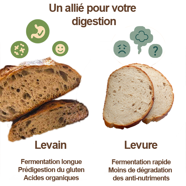 Pain plus «vivant» : fabrication artisanale, plus lente, avec des variations naturelles selon la température, l'humidité et la farine